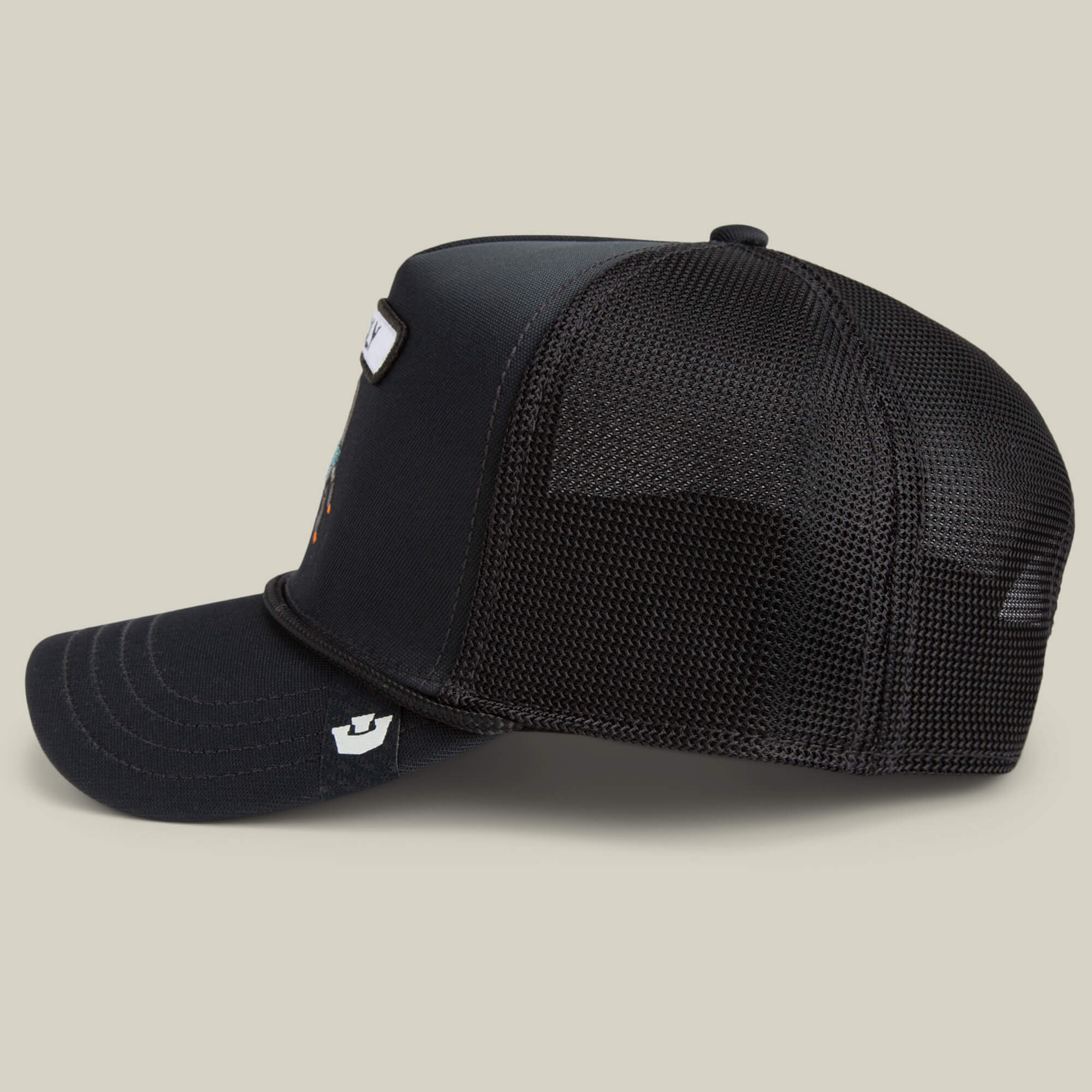 Matte black crown with a venomous sting stitched right up front. The scorpion patch hits sharp, the mesh back keeps it breathable, and the name says everything you need—deadly cool.