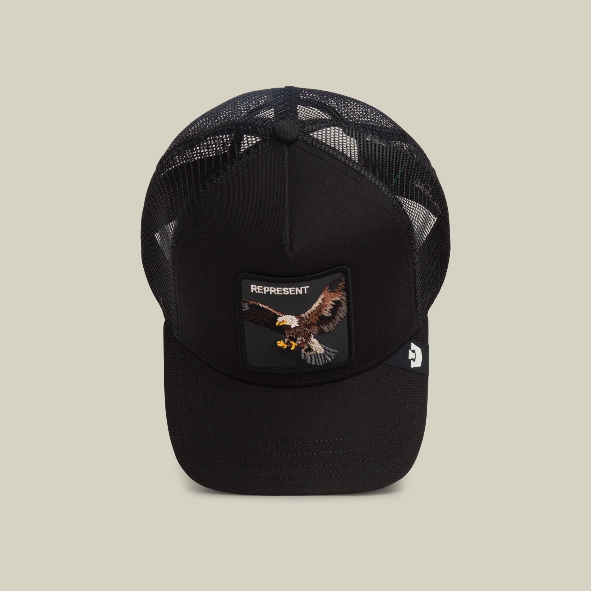 A classic trucker offered in black or tan with green, both stamped with a flying eagle patch that says REPRESENT and means it. Wings wide, claws ready, no confusion about where you stand. Eagle patch authority, clean colorways, and a reminder that showing up counts more than shouting.