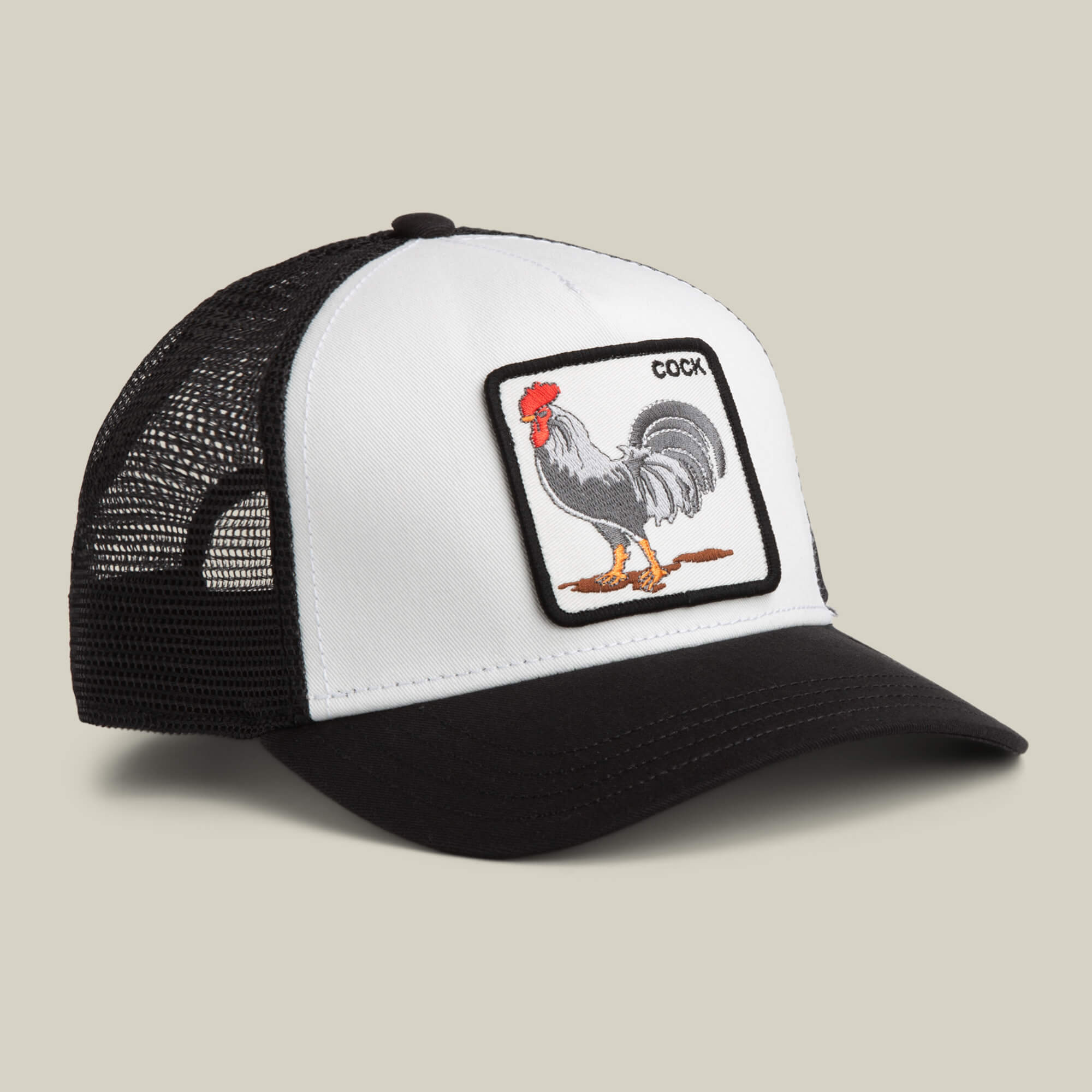 The Rooster Trucker wakes up early and owns it. Clean white front, classic black mesh, and a no-nonsense rooster patch stitched dead center—proud stance, sharp colors, zero humility. It’s playful, confident, and just provocative enough to get a second look.