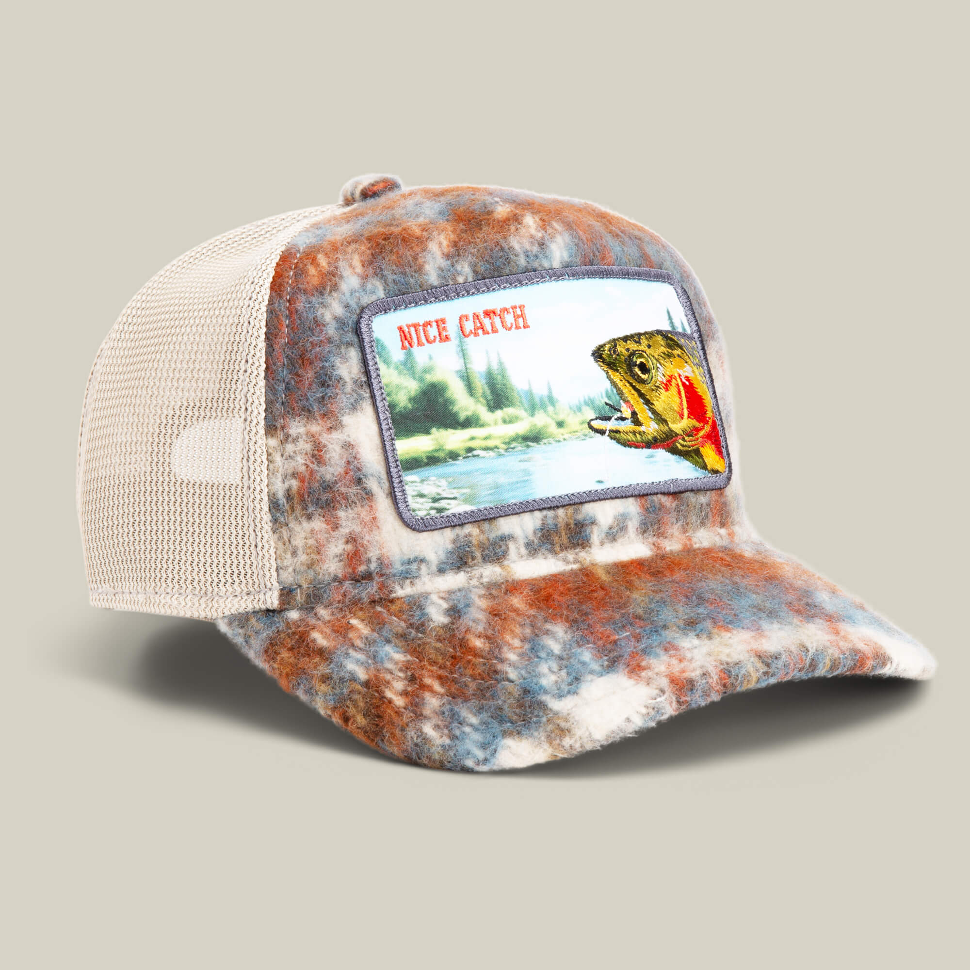 Wool plaid in river-rock tones with a trout patch mid-leap. Homestead doesn’t just play outside, it lives there. Down By The River feels like cast lines at sunrise, coolers packed, and stories that get taller with every retelling. Cozy flannel texture meets fishing-trip bravado, a true outdoors flex stitched for the ones who know patience pays off.