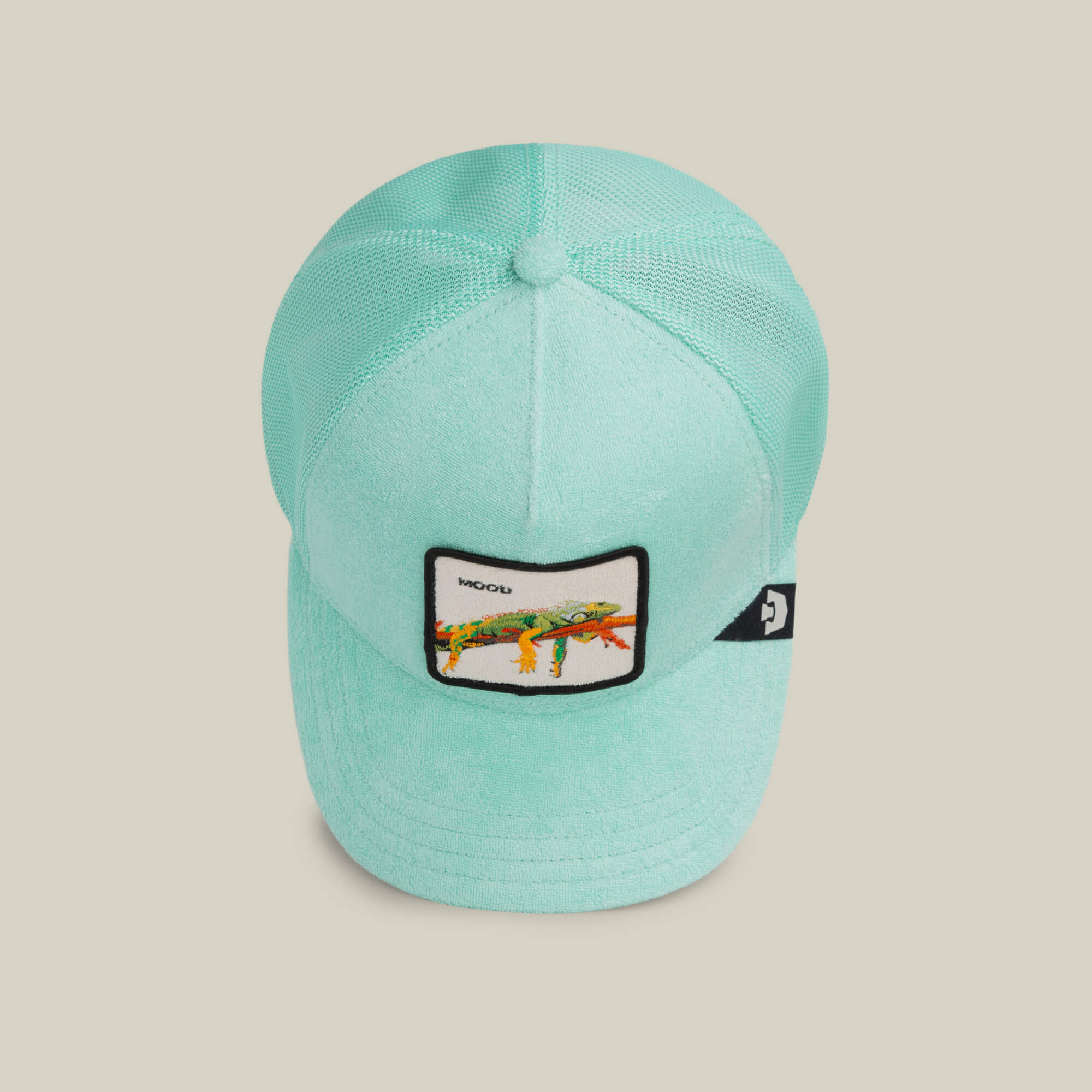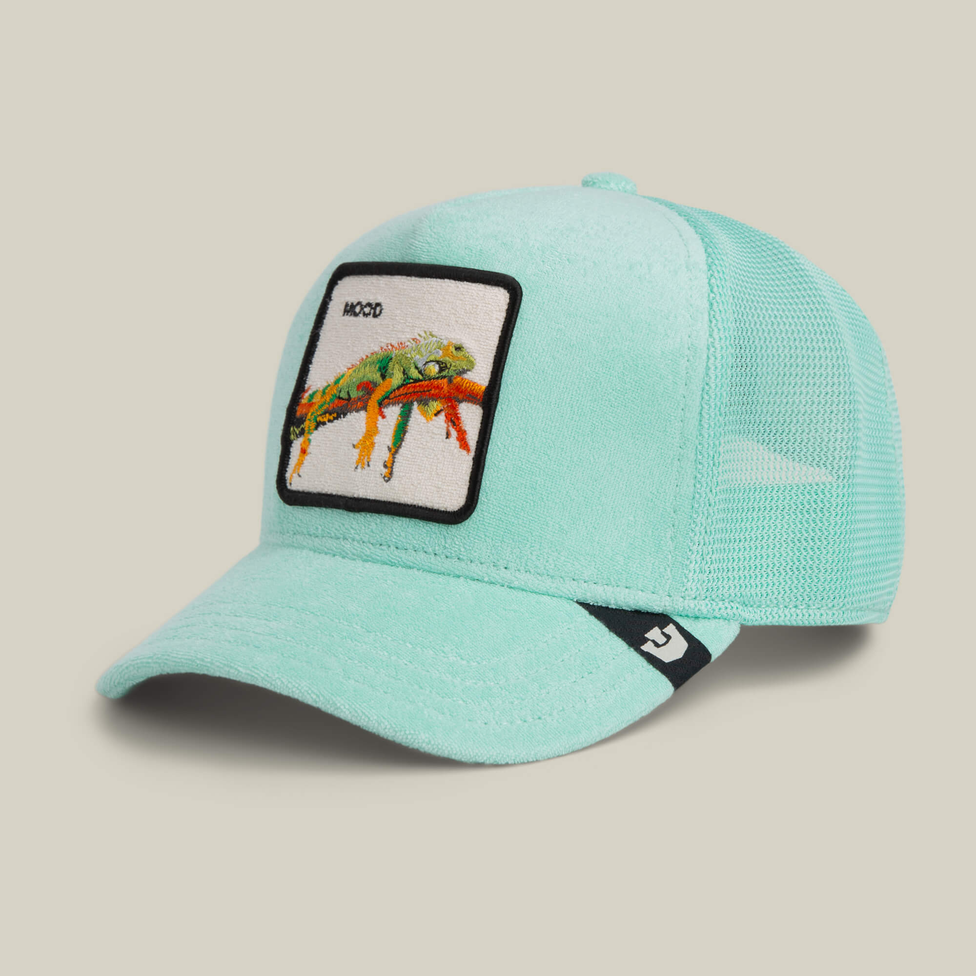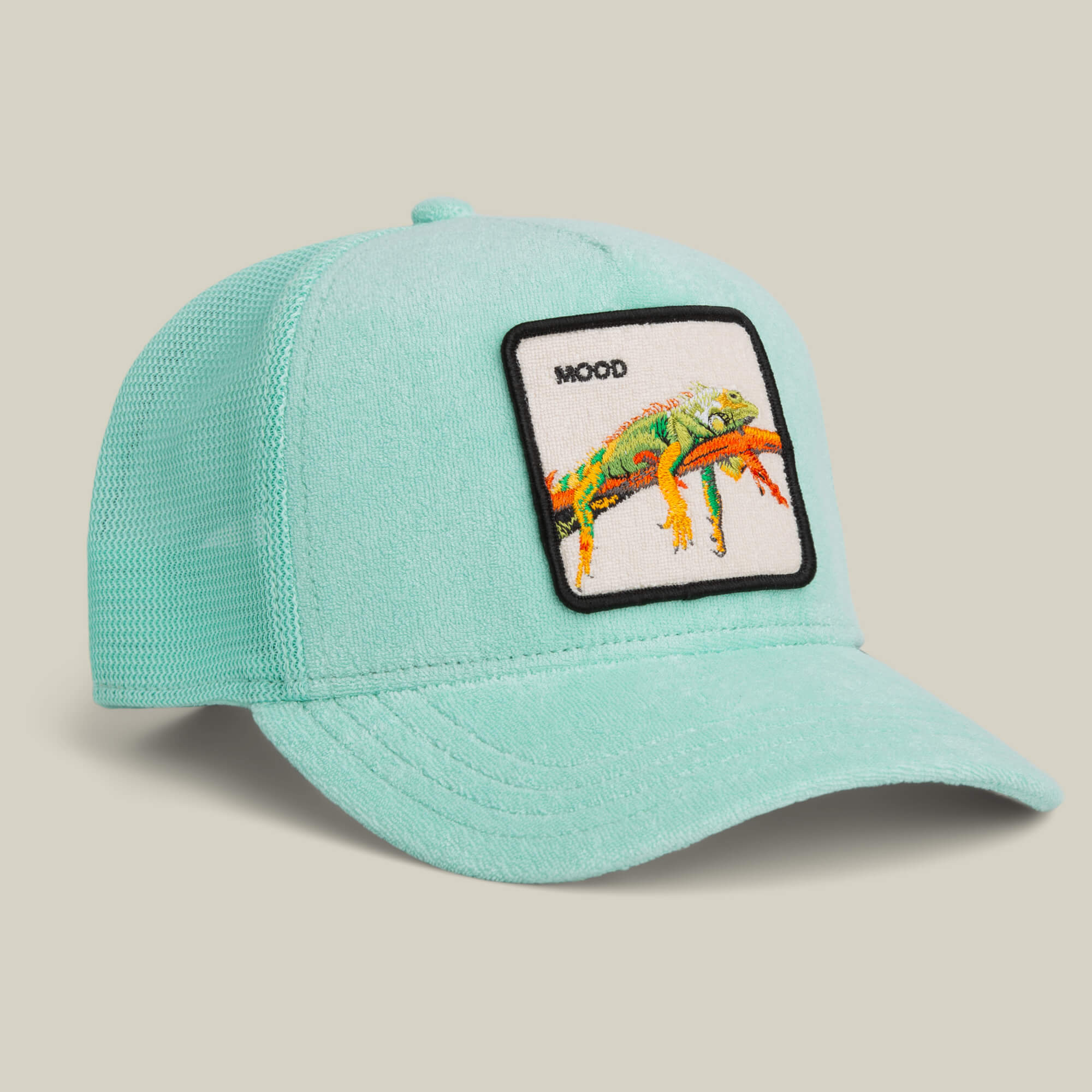 This terry cloth trucker features a relaxed lizard stretched across the patch with the word MOOD stitched above it. The towel-soft body gives it a plush, broken-in feel right out of the box. Light, breathable, and comfortable enough to wear all day, especially when doing absolutely nothing.