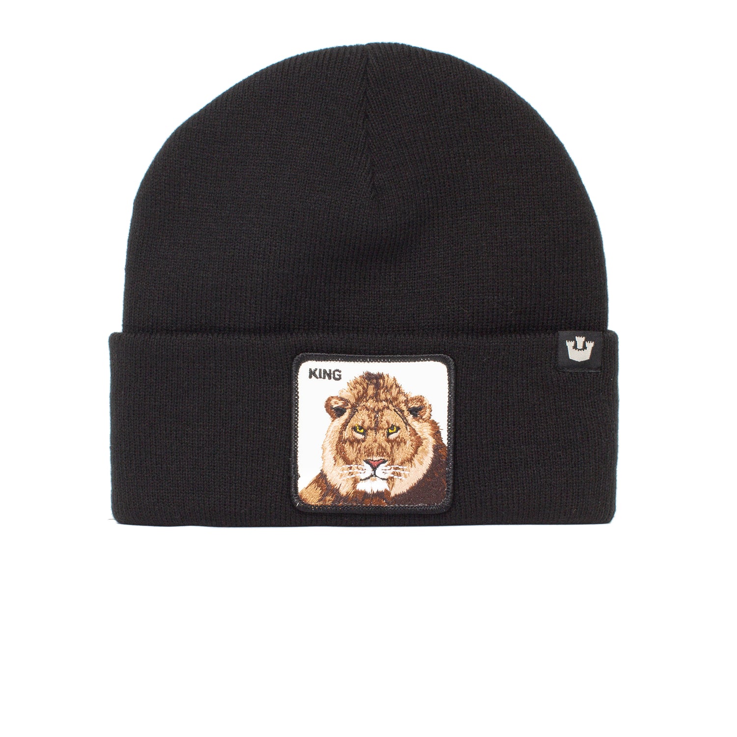 The Queen Beanie by Goorin Bros. is a pink knit hat with a bold tiger patch—perfect for adding standout style to chilly winter days.